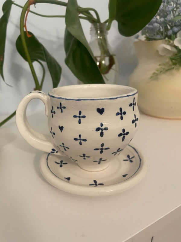 Dainty blue and white cup & saucer set